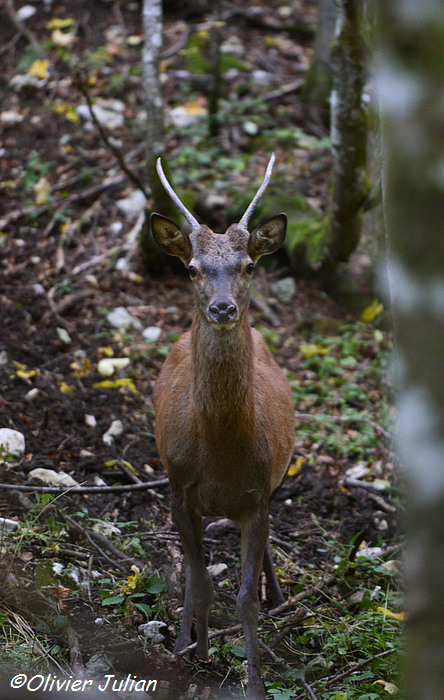 Ensuite venait un 8 cors qui s'est arrêté un moment derrière le petit tronc incliné pour voir qui le photographiait:
