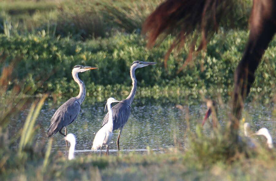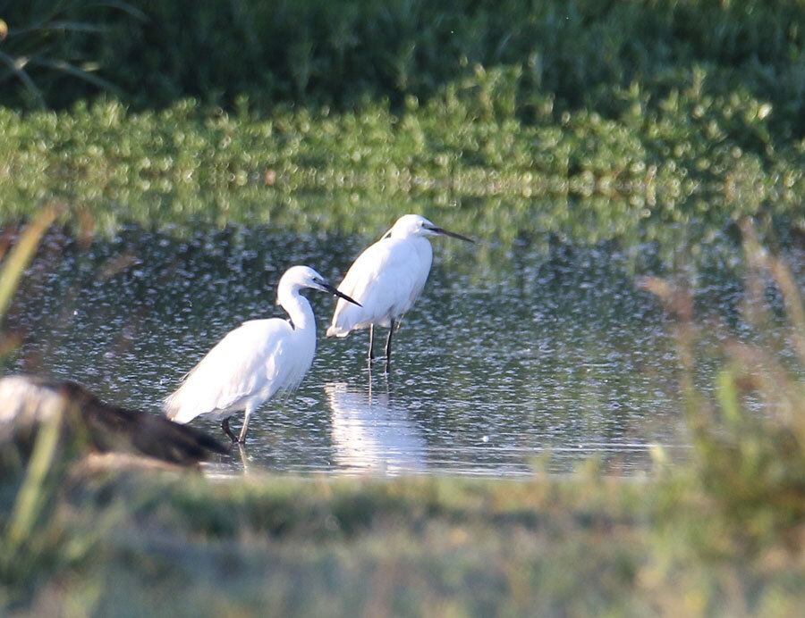 juillet dernier, le marais s'assèche lentement ce qui provoque le rassemblement de nombreux oiseaux