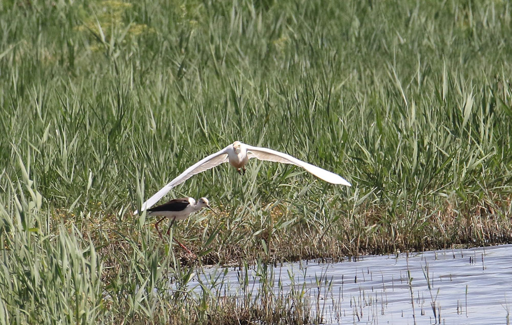 Bien saisi sur l'image 979, le héron pourpré qui fait de l'épandage d'engrais en vol.