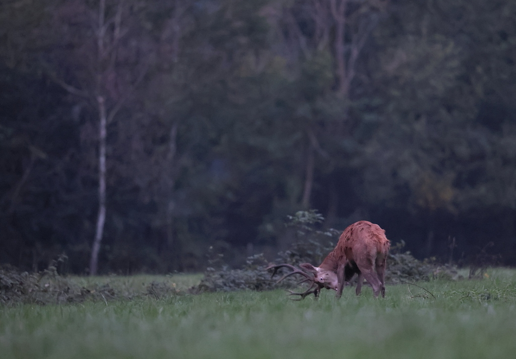 J'entends un premier brame dans une prairie voisine sur ma gauche. Pas bien fort, ni très nerveux, mais ça met bien l'ambiance.