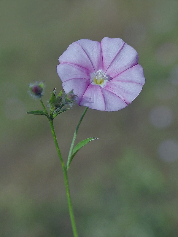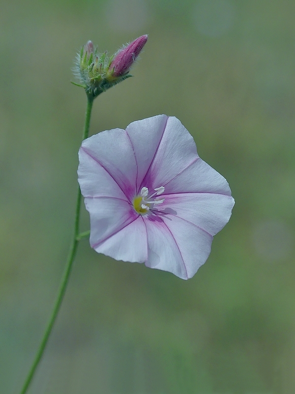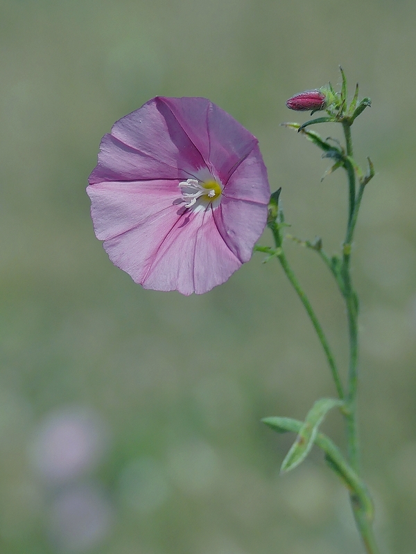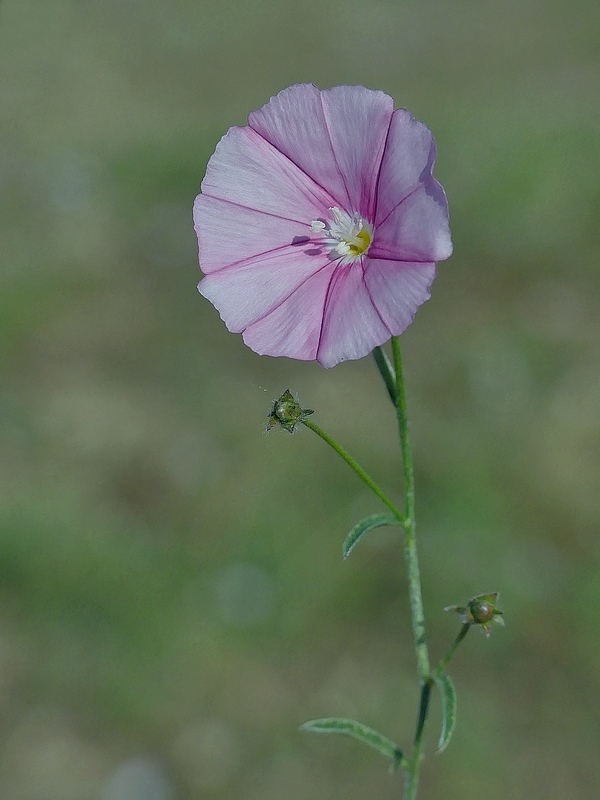 On le reconnaît à ses belles fleurs roses dont la corolle, en forme d'entonnoir, présente 5 lobes ainsi que des plis de couleur foncée, en forme d'étoile à 5 branches. La tige ascendante est velue, hérissée de longs poils