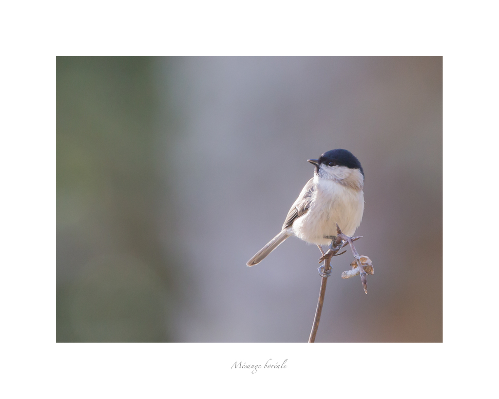 Je vous propose la très discrète mésange boréale photographiée à plus de 1000 mètres d'altitude. Identifiée à son chant