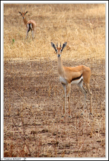 Aujourd'hui, c'est donc la gazelle de Thomson qui s'y colle. Comme toutes les gazelles, elle est d'un grâce et d'une finesse magnifique. Elle peut courir rapidement (60km/h) et n'hésite pas à le faire dès qu'elle sent un danger. C'est d'ailleurs difficile de les approcher, et mes photos sont généralement des crops assez important hélas, ne disposant que d'un 200mm à l'époque (18-200 canon)