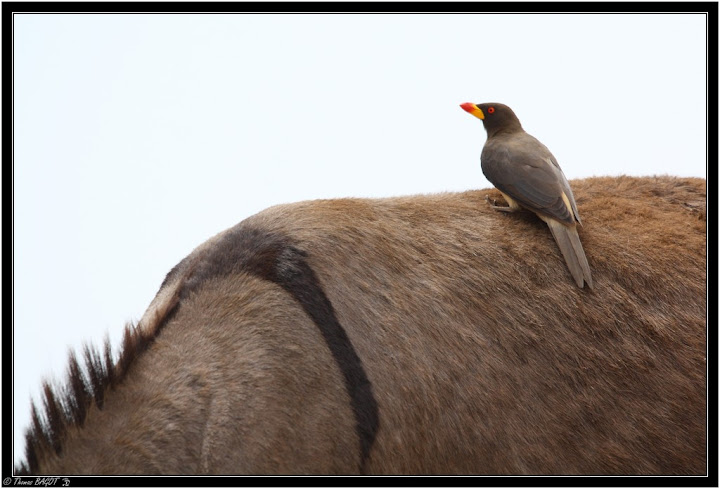 Curieusement, ce sont les ânes qui servaient de perchoir qui étaient plus farouches que les oiseaux... allez comprendre. Sinon, rien de bien spécial à dire de toute manière, je n'ai fait que croiser ces oiseaux (entre autres sur les girafes et zébus) sans pour autant les observer longuement comme j'ai pu le faire avec d'autres espèces. J'avoue que bien que j'ai croisé énormément d'espèces magnifiques ici, je commence à voir la fin de mon stock de photo présentables, et je n'ai pas trop le temps de faire de sorties en ce moment (fin de chantier à surveiller).