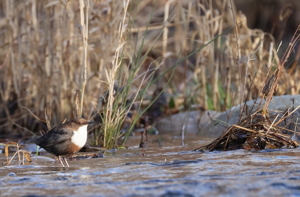 Maintenant, avec le redoux de ces derniers jours, les cincles sont devenus très actifs et sortent régulièrement pour plonger, commencer à chercher une partenaire en paradant et trouver des matériaux pour rafraichir la litière du nid.